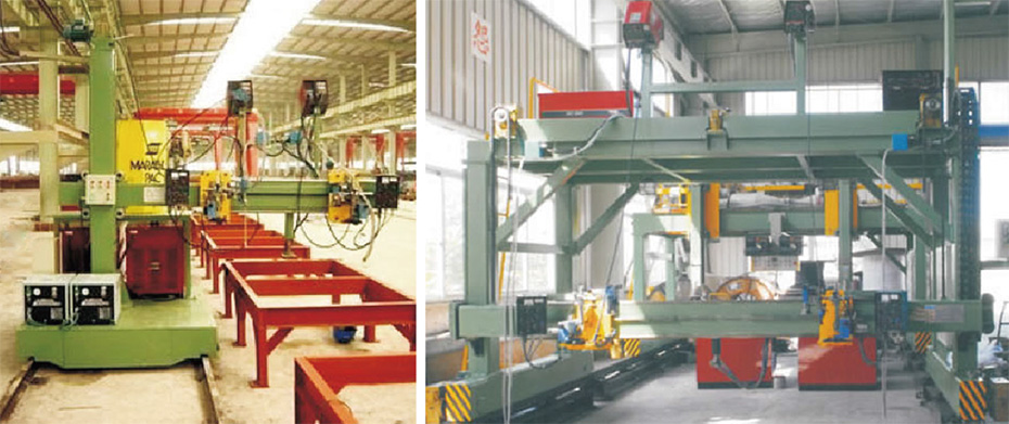 本機(jī)主要用于焊接箱形梁底板和蓋板(即翼板)與內(nèi)筋板內(nèi)側(cè)焊縫,也是箱形梁生產(chǎn)工藝需要的機(jī)器。