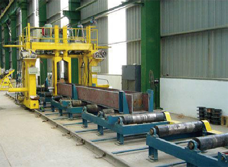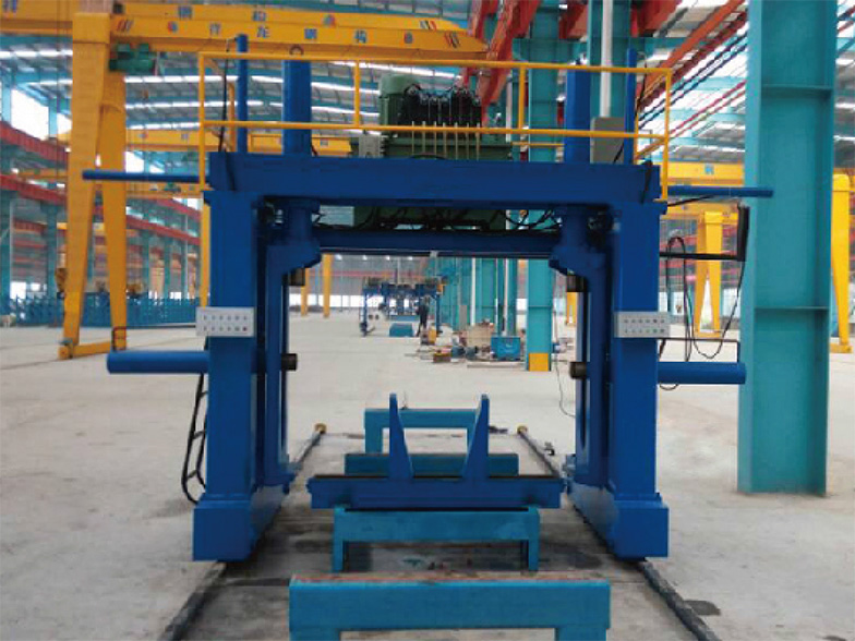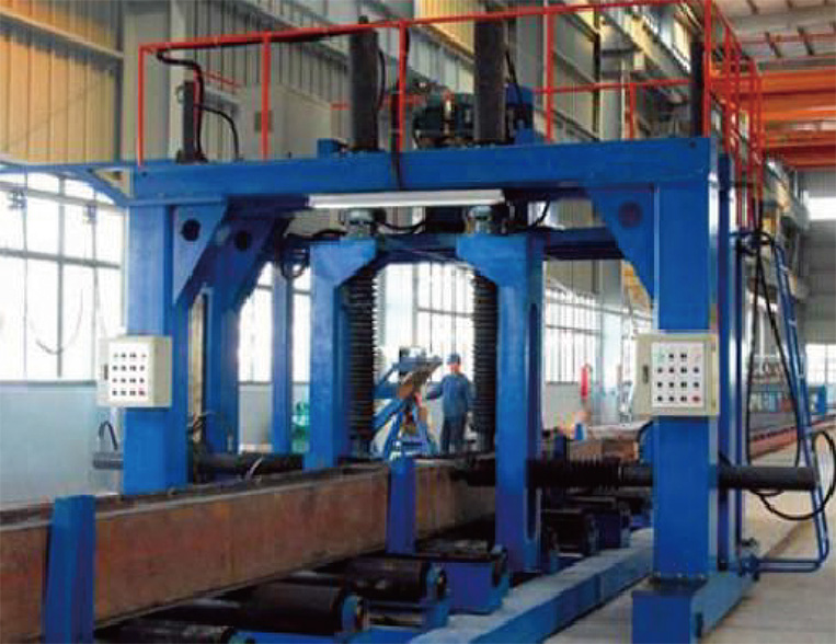 本機主要由導軌、行走驅動裝置、機架與平臺、上壓緊裝置、側壓緊裝置、液壓系統(tǒng)、電控系統(tǒng)等部件組成。本機為手動操作,采用工件不動,主機移動的方式。與工件移動,主機不動相比,主機移動的定位效果準確。本機主要用以完成∪型組立和箱型組立。本機適用工件尺寸可根據客戶需求定制。